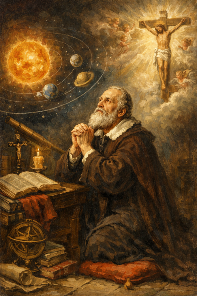 キリスト教を信仰するガリレオ (by Chat GPT)
